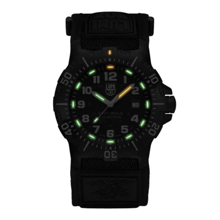 Equipped with Luminox Light Technology (LLT), featuring 16 light tubes in iconic green and orange the watch guarantees constant visibility for up to 25 years in any environment. Its screw-in stainless steel case back, engraved with the Navy SEALs logo alongside a powerful design that includes the American eagle, a Naval anchor, and the Luminox logo, reinforces authenticity. Designed for versatility, it includes a black rubber strap and an adjustable Velcro strap for tactical adaptability. Water-resistant up to 200 meters, this watch is the ultimate tool in the harshest terrains, on land or in the water.