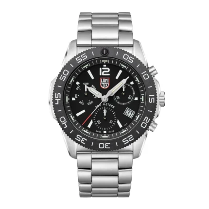 Bold colour meets rugged performance in this versatile dive watch built for life above and below the surface. The Pacific Diver 3120 Series features a 44mm IP black stainless steel case with a CARBONOX™ unidirectional bezel, delivering durability without the weight. A vivid ocean blue sunray dial offers a vibrant, high-contrast display that’s as eye-catching as it is functional. Equipped with Luminox Light Technology for a constant glow in low light and total darkness, this watch is always ready for the next mission. The versatile black cut-to-fit strap can be cut to any desired length and is designed to fit all wrist sizes. With 200 meters of water resistance, a screw-down crown, and a sapphire crystal with anti-reflective coating, the Pacific Diver is a trusted companion below and above water.