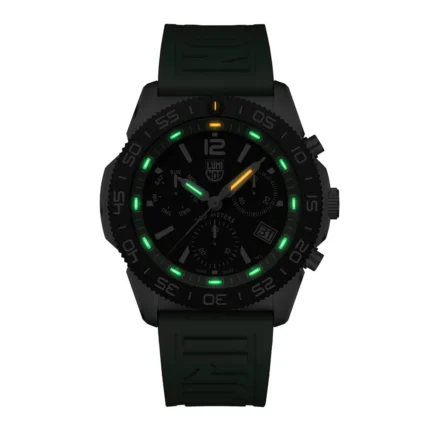 A striking emerald green sunray dial offers a vibrant, high-contrast display that’s as eye-catching as it is functional. Equipped with Luminox Light Technology for a constant glow in low light and total darkness, this watch is always ready for the next mission. The versatile black cut-to-fit strap can be cut to any desired length and is designed to fit all wrist sizes. With 200 meters of water resistance, a screw-down crown, and a sapphire crystal with anti-reflective coating, the Pacific Diver is a trusted companion below and above water.