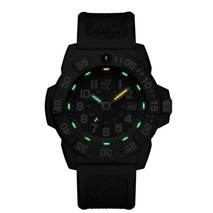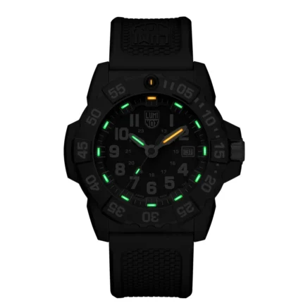 Luminox expands its legendary Navy SEAL 3500 Series with a new stealth-inspired black watch, crafted entirely from the brand’s proprietary CARBONOX™ material. Featuring a case, bezel, and even bracelet crafted from CARBONOX™, this latest release is the lightest model in the entire collection, offering unmatched durability, strength, and comfort for any adventure or mission.