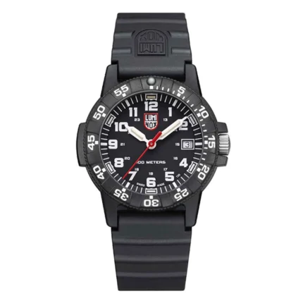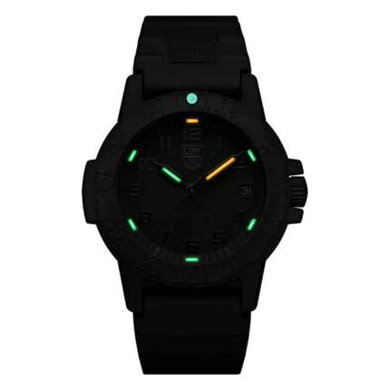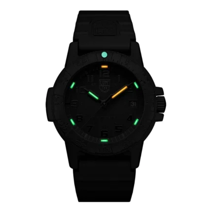 The Luminox Sea Turtle XS.0326 is a 44mm men's sports watch from the Leatherback SEA Turtle collection. Key features include a lightweight, durable CARBONOX™ case, water resistance, and signature light-emitting hands. It is a rugged timepiece often marketed for diving or outdoor activities, known for its high visibility.
