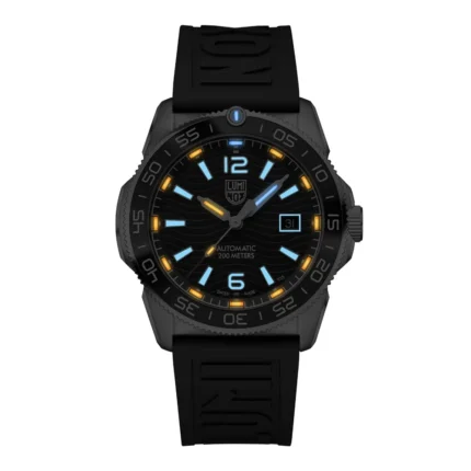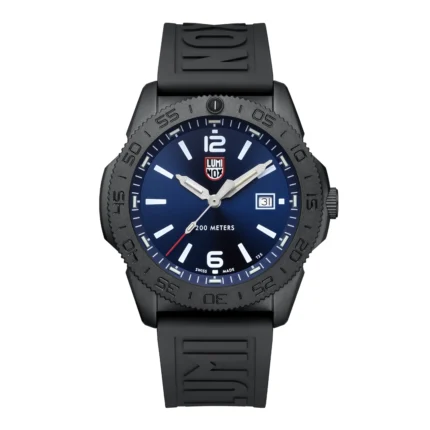 Bold colour meets rugged performance in this versatile dive watch built for life above and below the surface. The Pacific Diver 3120 Series features a 44mm IP black stainless steel case with a CARBONOX™ unidirectional bezel, delivering durability without the weight. A vivid ocean blue sunray dial offers a vibrant, high-contrast display that’s as eye-catching as it is functional. Equipped with Luminox Light Technology for a constant glow in low light and total darkness, this watch is always ready for the next mission. The versatile black cut-to-fit strap can be cut to any desired length and is designed to fit all wrist sizes. With 200 meters of water resistance, a screw-down crown, and a sapphire crystal with anti-reflective coating, the Pacific Diver is a trusted companion below and above water.