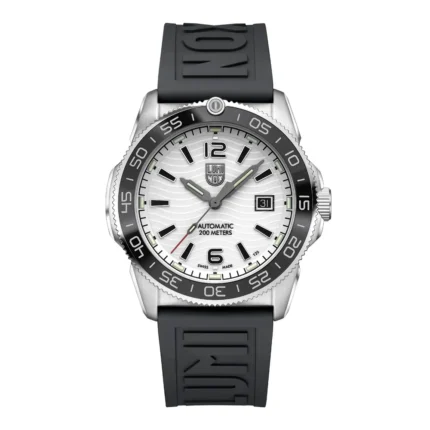 This remarkable wristwatch is part of the Heritage Collection which celebrates Luminox’s 35 years of groundbreaking light technology. For maximum visibility, this timepiece features 16 LLT tubes and a white-textured dial fully coated with Super-LumiNova®, which gives it an aquatic glow when charged and activated in dark light conditions. In addition, the numbers on the bezel are painted with Super-LumiNova®, making this watch Luminox’s most luminous piece to date. Powered by a SELLITA automatic movement, the watch combines a 42mm stainless-steel uni-directional bezel with a black strap and a black ceramic ring insert on the bezel. Whether you’re in the office, catching a wave, or hundreds of meters underwater, this dynamic timepiece is engineered for peak performance.