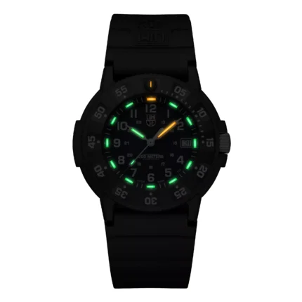 This limited-edition Navy SEAL 3050 watch presents a rebellious twist on an iconic design. Inspired by the legendary Jolly Roger flag symbolising freedom, fearlessness, and ferocity, this unique timepiece is limited to 888 pieces worldwide. The blackout dial of the watch features a luminous skull insignia at 9 o’clock, glowing with Super-LumiNova® in defiant detail. The 44 mm CARBONOX™ case is paired with a CARBONOX™ unidirectional bezel and is water-resistant to 200 meters – engineered for land or sea. Powered by a Swiss quartz Ronda 515 movement and equipped with Luminox Light Technology (LLT), it stays visible for up to 25 years independent of external light sources. The Velcro fast strap, finished with a black rubber Luminox logo, ensures comfort and durability in the most extreme conditions. Rugged, reliable, and rebellious — this watch is a call for adventure.