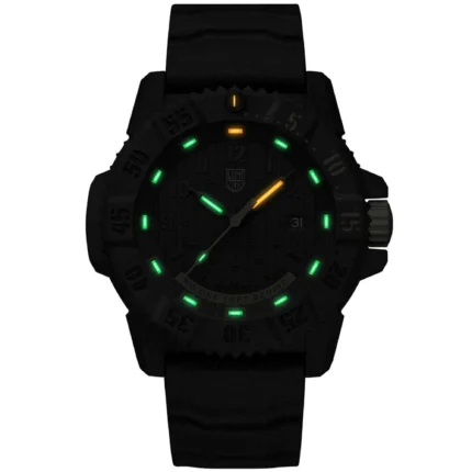 Mil-Spec (short for Military Specification) refers to the military standard from the U.S. Department of Defense. The XL.3359.SET, with a lightweight yet ultra-durable CARBONOX™+ 46mm case, Grade 2 Titanium bezel, and 300-meter water resistance, meets these rigorous technical standards and thrives in the world’s toughest conditions. Inside, the Swiss Made ETA F06.412 quartz movement with HeavyDrive and PreciDrive ensures precision and reliability, even under extreme impact or temperature change. The bold white strap and bezel markings offer an arctic-ready aesthetic, while the large orange second hand with SuperLumi-Nova coated arrow-tip, plus Luminox Light Technology ensure unmatched visibility in all light conditions. Delivered as a set with an additional black webbing strap, this battle-tested timepiece offers both performance and versatility. Built to the technical compliance of MIL-PRF-46374G Type III Class 1, the XL.3359.SET is trusted by professionals and built for those who never back down.