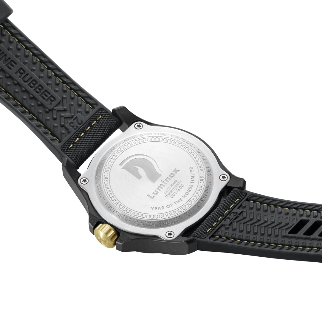 This Atacama Field limited-edition timepiece celebrates the 2026 Chinese Year of the Horse blending cultural symbolism with proven outdoor performance. Crafted in a lightweight yet ultra-durable 43 mm CARBONOX™ case, this Swiss Made watch is built for reliability in demanding environments. The sandblasted black dial features a distinctive gold-tone Luminox logo, gold crown and a unique horse emblem at 7 o’clock, celebrating strength, endurance and freedom. Powered by a Swiss quartz movement and water resistant to 100 metres, it delivers uncompromising functionality, day and night, thanks to Luminox Light Technology with constant glow for up to 25 years.
