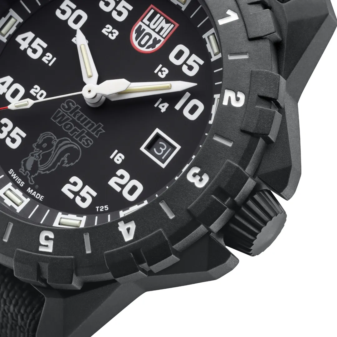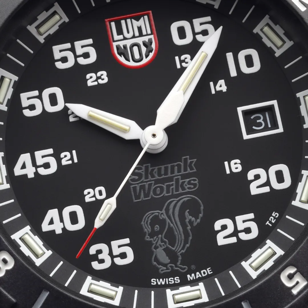 The Luminox F-117 Nighthawk x Skunk Works Heritage wristwatch is a powerful tribute to the legendary stealth aircraft and the elite pilots who flew it. Inspired by aviators who approached Luminox nearly 25 years ago, this timepiece blends aviation heritage with modern military-grade performance.