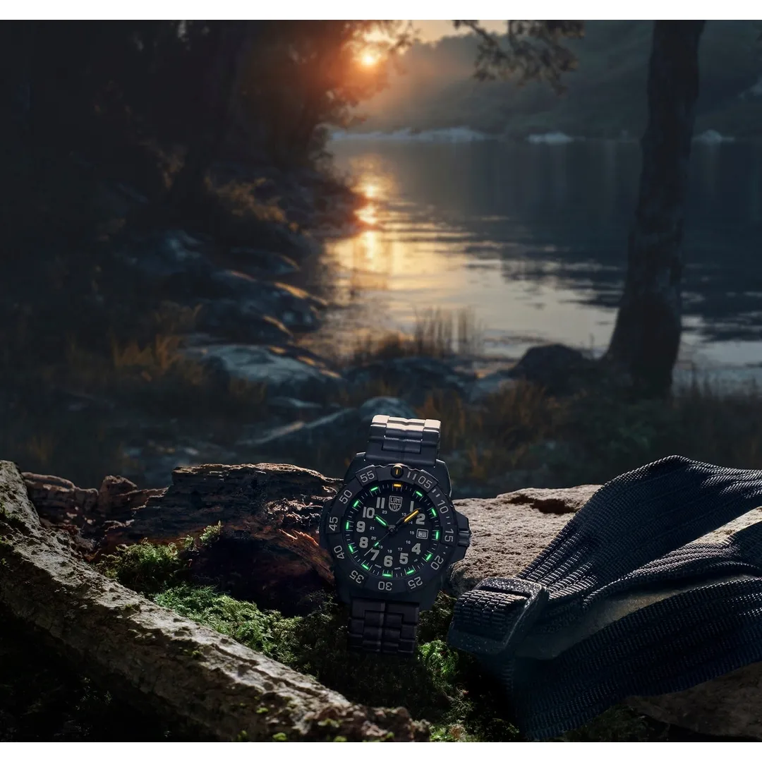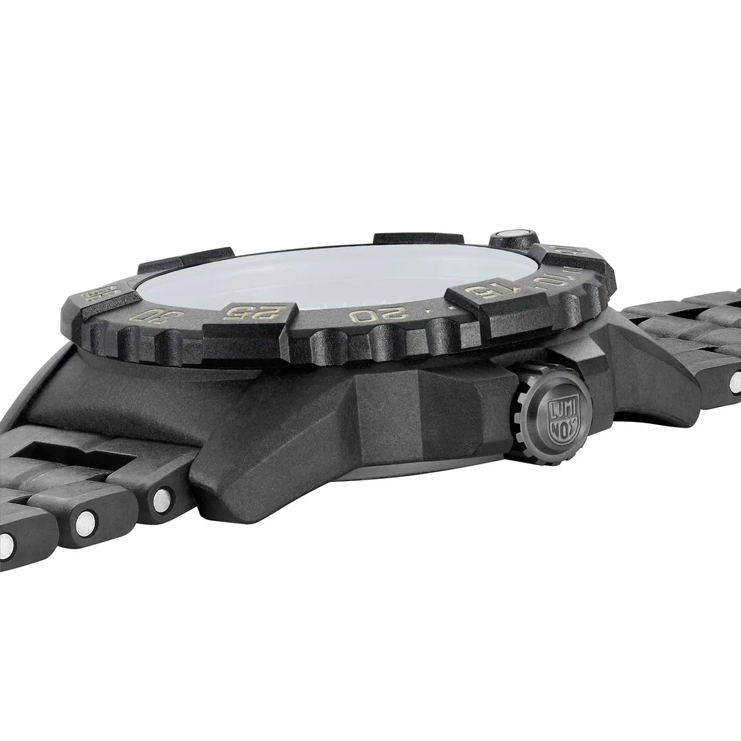 Luminox expands its legendary Navy SEAL 3500 Series with a new stealth-inspired black watch, crafted entirely from the brand’s proprietary CARBONOX™ material. Featuring a case, bezel, and even bracelet crafted from CARBONOX™, this latest release is the lightest model in the entire collection, offering unmatched durability, strength, and comfort for any adventure or mission.