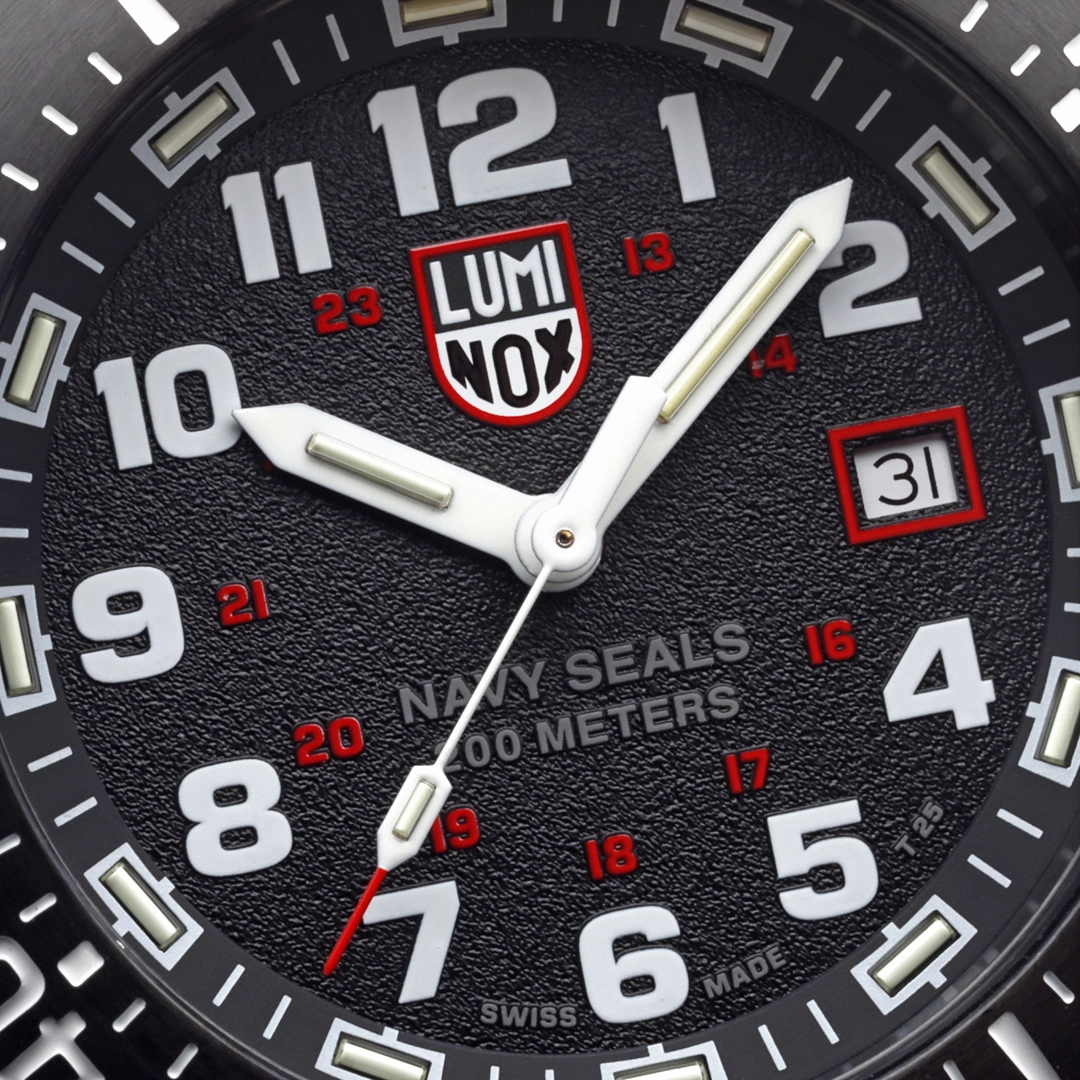Equipped with Luminox Light Technology (LLT), featuring 16 light tubes in iconic green and orange the watch guarantees constant visibility for up to 25 years in any environment. Its screw-in stainless steel case back, engraved with the Navy SEALs logo alongside a powerful design that includes the American eagle, a Naval anchor, and the Luminox logo, reinforces authenticity. Designed for versatility, it includes a black rubber strap and an adjustable Velcro strap for tactical adaptability. Water-resistant up to 200 meters, this watch is the ultimate tool in the harshest terrains, on land or in the water.