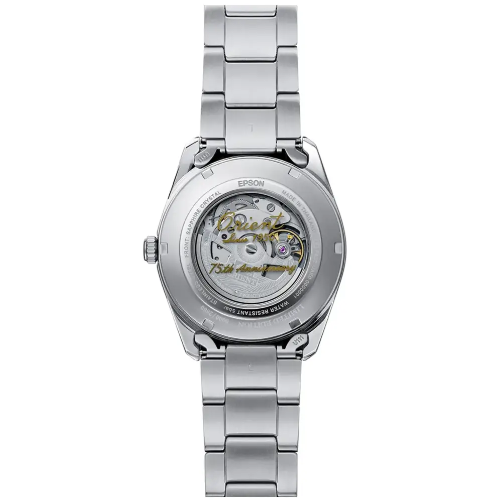 Powered by a precise hand-wound mechanical movement, this watch celebrates the art of traditional horology. The see-through case back reveals the intricate movement and is engraved with “Orient Since 1950 75th Anniversary,” along with an individual serial number, underscoring its exclusivity as part of a limited run of only 2,800 pieces worldwide.