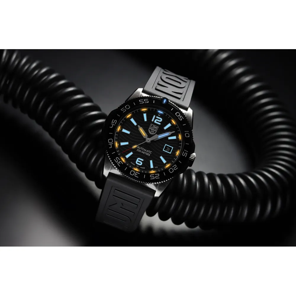 The Pacific Diver series stands out with a sporty look and intriguing fusion of materials. The XS.3101 watch features a black cut-to-fit rubber strap and versatile 42mm stainless-steel case with sapphire crystal and anti-reflective coating. A stainless-steel bezel with a ceramic ring insert completes the design. To evoke the spirit of the ocean, the Pacific Diver Automatic sports a distinct textured black dial with a wave pattern. The intricate SELLITA automatic movement provides a new level of precision powered by the wearer’s movements. Whether you’re in the office, catching a wave, or hundreds of meters underwater, this dynamic timepiece is engineered for peak performance.