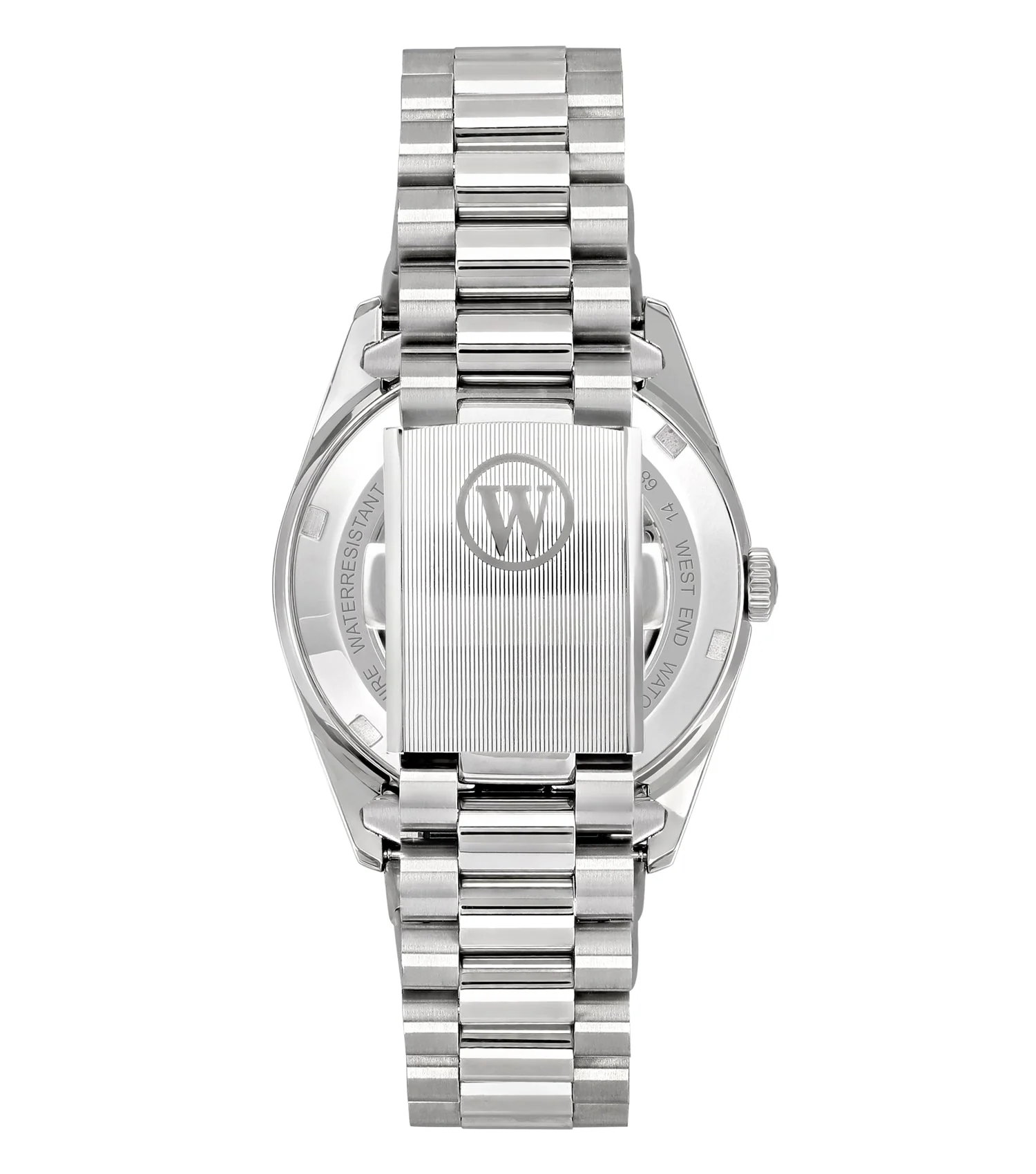 A refined automatic watch by West End Watch Co, featuring a sleek 37mm silver dial and stainless steel case — a timeless choice for the modern gentleman.