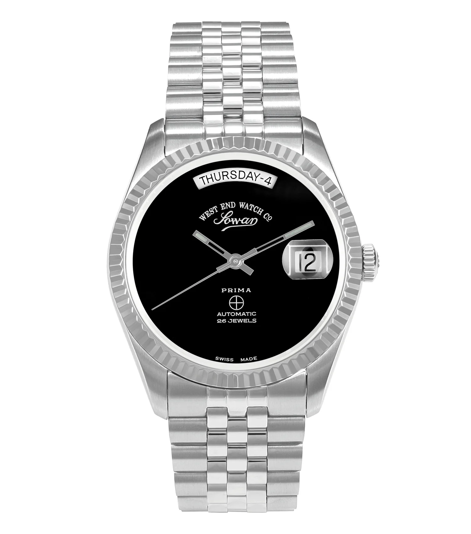 The West End ONYX BLACK is a timeless 37mm automatic watch crafted for those who appreciate Swiss precision and elegant design. Featuring a lustrous black dial, stainless steel construction, and INCABLOC® anti-shock protection, it’s the perfect everyday companion that never compromises on sophistication. A sapphire glass lens with magnifier and secure clasp bracelet ensure durability and comfort.